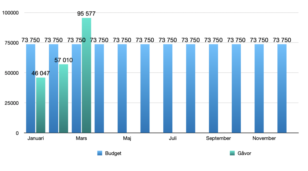 Vid årsmötet sattes årets gåvomål till 885 000 kr vilket är 73 750 kr/månad.